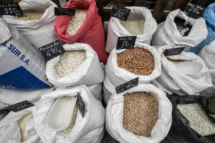 Se pueden encontrar variedad de legumbres, hierbas, condimentos, frutos secos, fruta desecada, harinas, caramelos, repostería artesana, miel y un sinfín de artículos. Todos ellos de temporada.